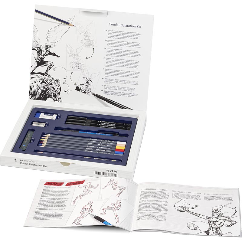 - Das Comic Illustration Set enthält alles, was du für den Einstieg ins Comic-Zeichnen benötigst: Bleistifte zum Skizzieren, Pitt Artist Pens für Konturen, Goldfaber zum Kolorieren