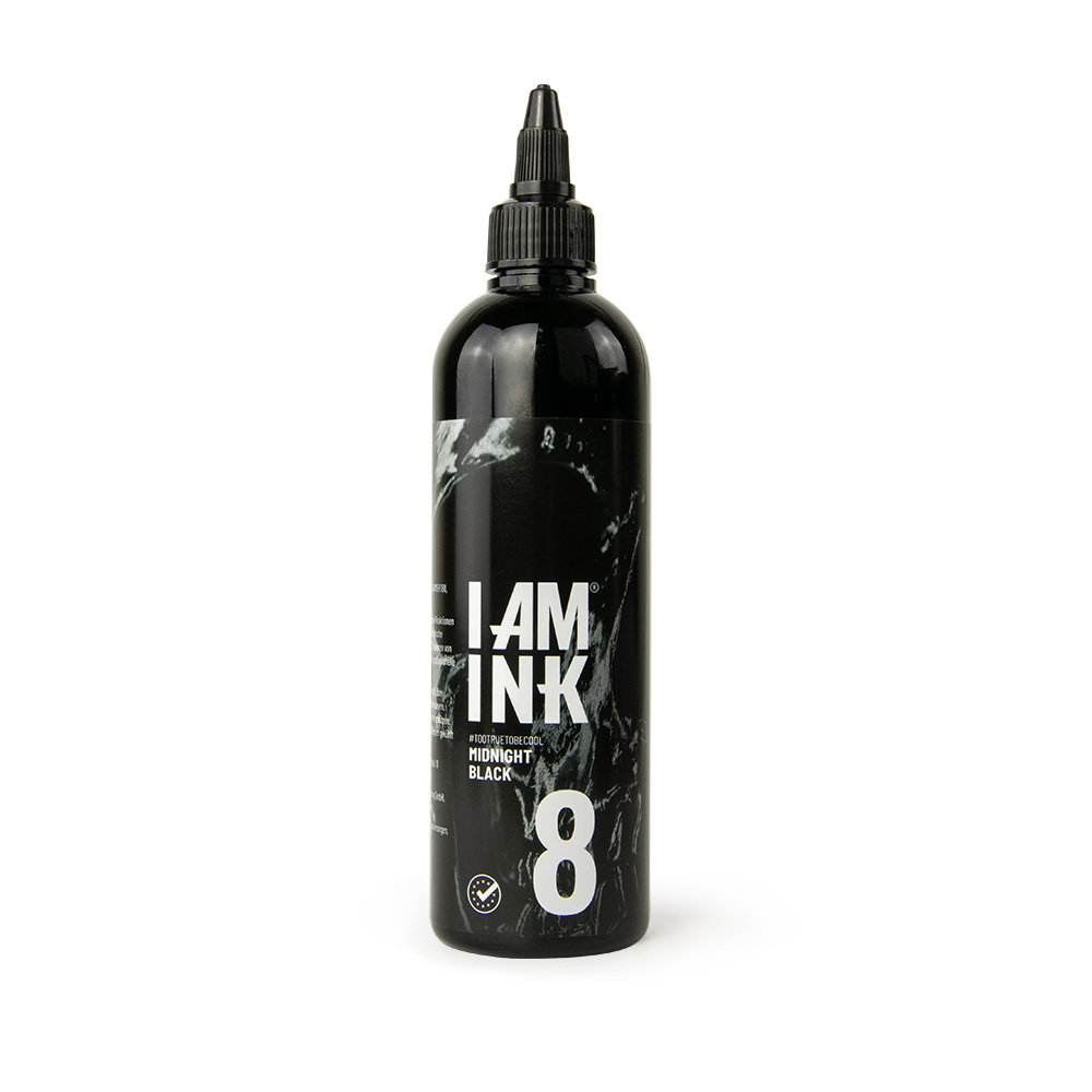 8 Midnight Black ist ein brutales, fast unbezähmbares Schwarz. Perfekt für Blackwork.