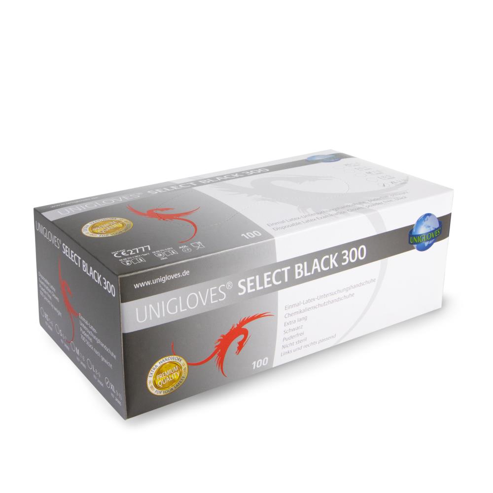 Produktinformationen "Latexhandschuhe Select Black 300,extra lang XL,100 St -Unigloves"