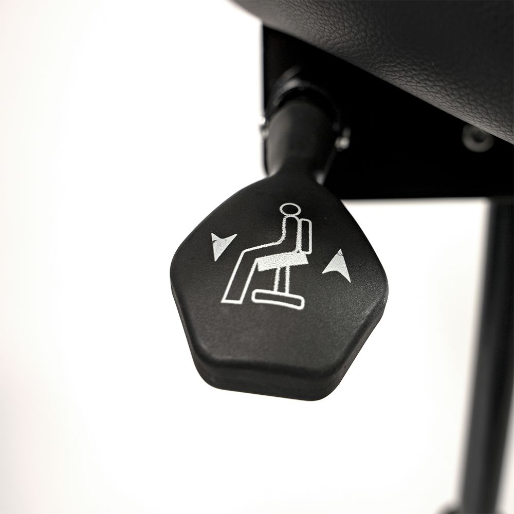 Der TattooWorkz FORMA-C ist ein stabiler, höhenverstellbarer Tattoo-Studio-Stuhl mit Sattelsitz und Rückenlehne. Der Sitzt besteht aus hochwertigem Memory-Schaum mit PU-Lederbezug für angenehmen Sitzkomfort. Montiert ist er auf einem robusten Stahlmechanismus mit Neigungsverstellung, unterstützt von einer komplett schwarzen Gasdruckfeder auf einem soliden Aluminiumsockel mit weichen Laufrollen. Die Rollen bremsen automatisch, wenn niemand auf dem Stuhl sitzt.
