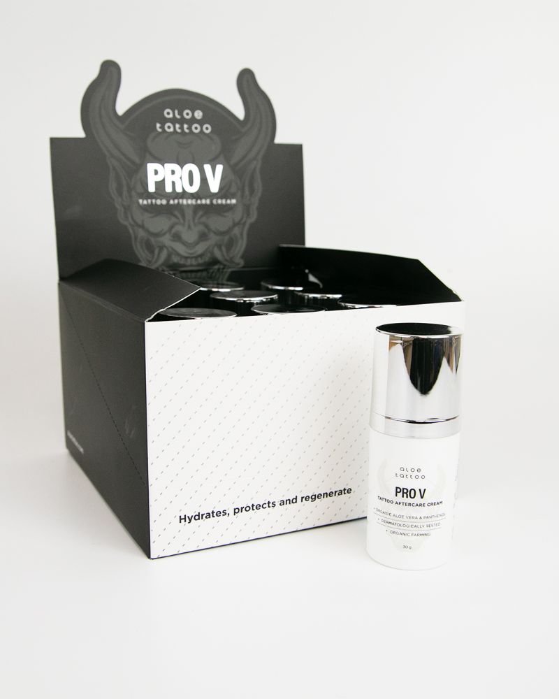 The new ALOE PRO V TATTOO AFTERCARE CREAM is completely free of preservatives and petroleum derivatives.